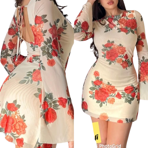 Ladies Tight Fit Dress Flowery